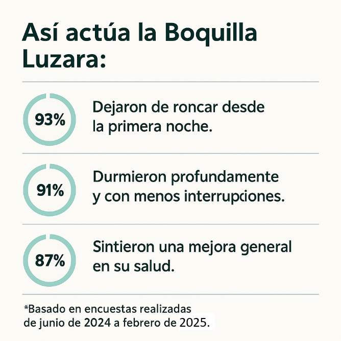 Empezaba a tener noches de pesadilla donde casi me ahogaba. No sabía lo que era dormir bien hasta que probé la boquilla Luzara. Ahora me levanto con energía real y sin cansancio.